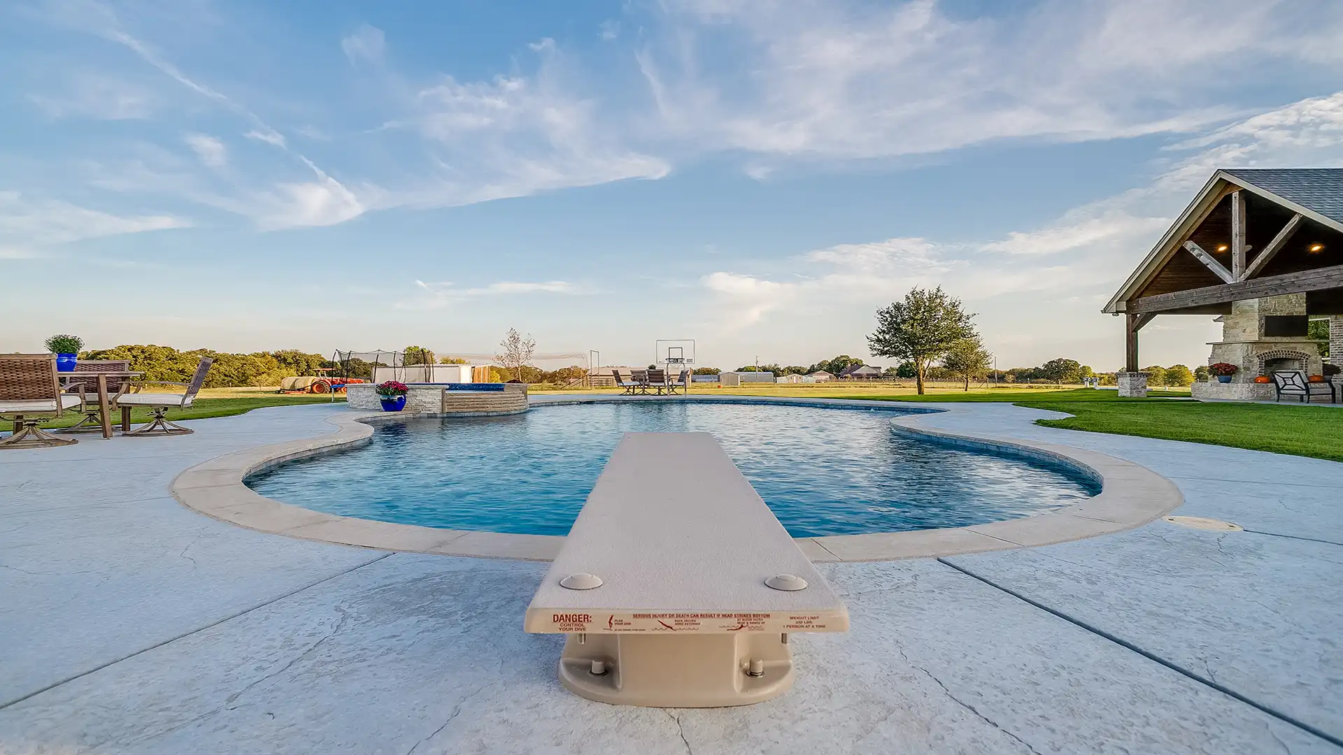 Pool Features: Integrated Spa, Diving Board, Freeform Design